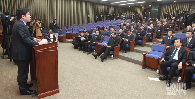 원유철 새누리당 원내대표가 26일 오전 서울 여의도 국회에서 열린 새누리당 의원총회에서 모두발언을 하고 있다.