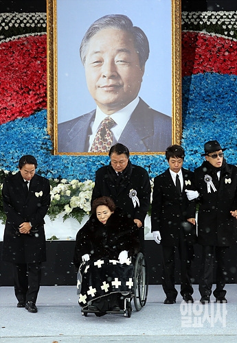 26일, 서울 여의도 국회 본청 앞에서 엄수된 고 김영삼 전 대통령 국가장 영결식이 열린 가운데, 함박눈이 흩날리고 있다.