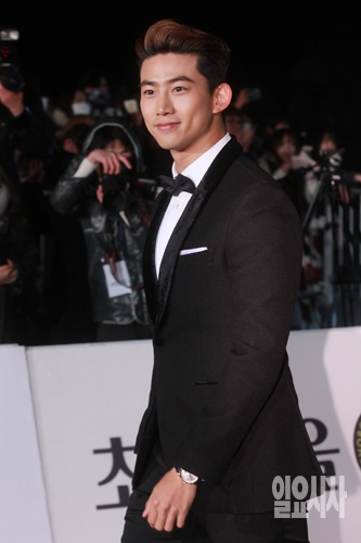 그룹 2PM의 옥택연이 26일 오후 서울 동대문구 경희대학교 평화의전당에서 열린 제36회 청룡영화상 시상식에 참석해 레드카펫을 밟으며 입장하고 있다.