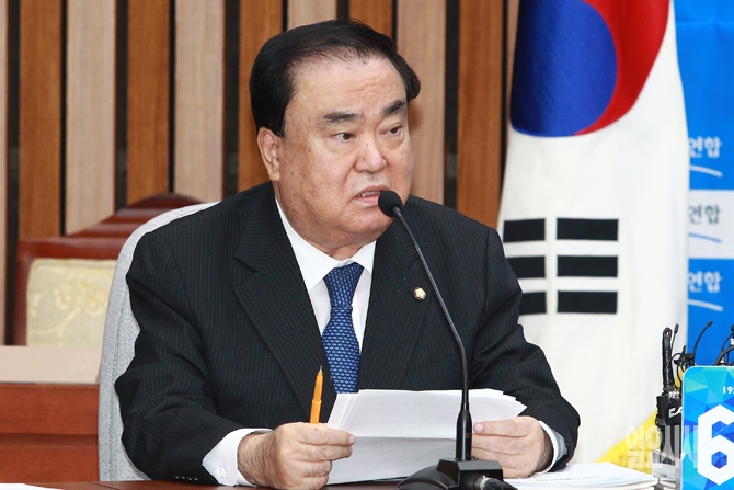 문희상 새정치민주연합 의원이 27일 오전 서울 여의도 국회에서 열린 새정치민주연합 최고위원-중진의원 연석회의에서 발언을 하고 있다.