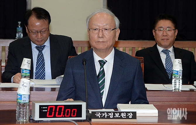 30일, 서울 여의도 국회 정보위원장실서 열린 전체회의 직전, 이병호 국정원장이 굳은 표정을 짓고 있다.