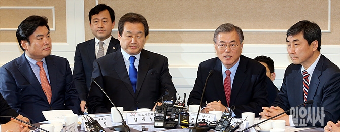 30일, 서울 여의도 국회서 열린 '한중FTA 국회비준 관련 여야회담' 도중 새정치민주연합 문재인 대표가 발언하고 있다.