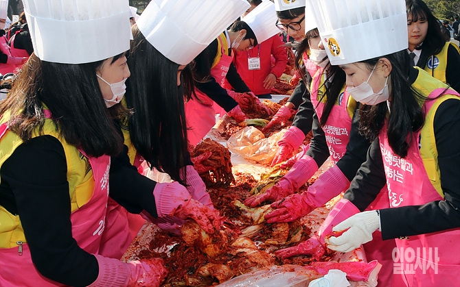 1일, 서울 여의도 국회서 생생텃밭과 함께 하는 김장담그기 행사가 진행되고 있다.