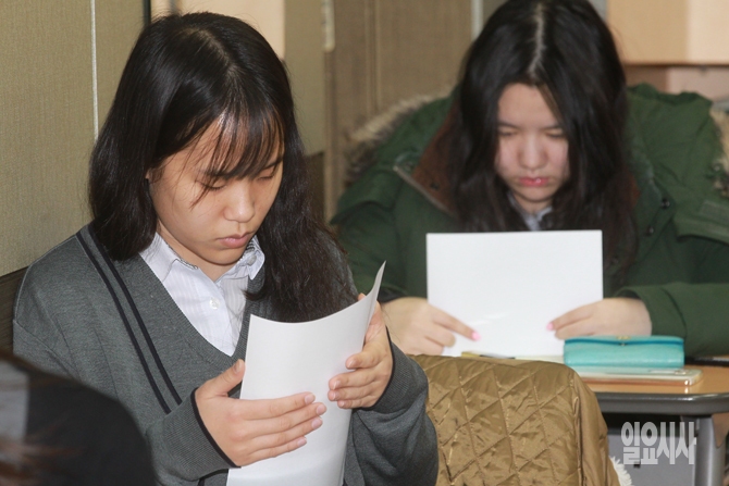 2016학년도 수능시험 성적표 배부일인 2일 오전 서울 중구 순화동 이화여자외국어고등학교에서 학생들이 수능 성적표를 보고 있다.