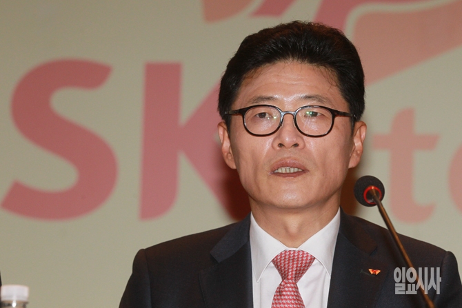 이형희 SK텔레콤 MNO 총괄이 2일 오후 서울 중구 SK텔레콤 본사 사옥에서 열린 CJ헬로비전 인수 및 SK브로드밴드와의 합병 관련 설명회에서 기자들의 질문에 답변하고 있다.