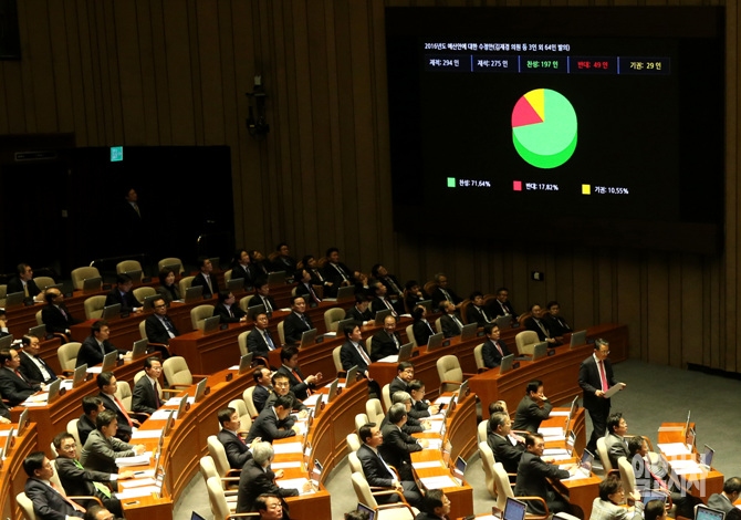 3일, 서울 여의도 국회 본회의장에서 내년도 새해예산안이 법정처리기한인 2일을 넘어 본회의를 통과하고 있다.