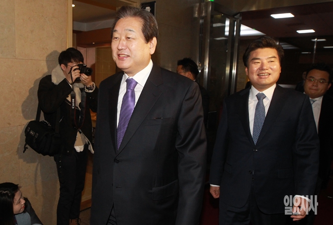 새누리당 김무성 대표와 원유철 원내대표가 3일 오전 서울 여의도 국회에서 열린 국회의장-여야 대표-원내대표 면담에 참석하기 위해 국회의장실로 이동하고 있다.