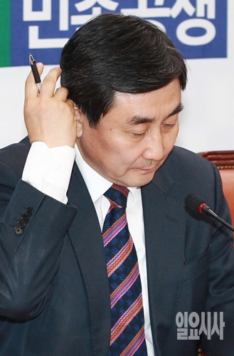 이종걸 새정치민주연합 원내대표가 3일 오전 서울 여의도 국회에서 열린 새정치민주연합 정책조정회의에서 머리를 긁적이고 있다.