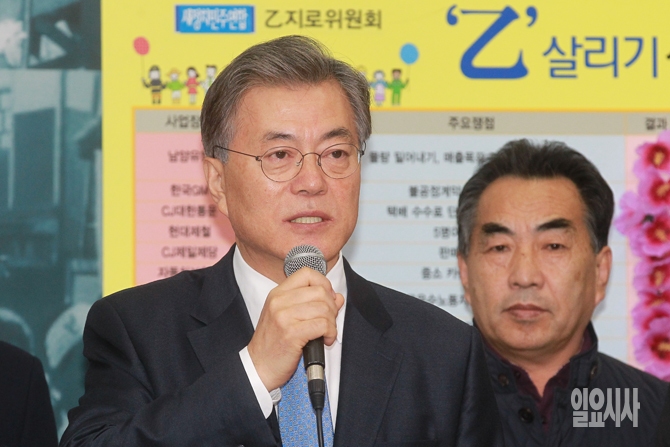 문재인 새정치민주연합 대표가 4일 오전 서울 여의도 국회에서 '남양유업법(대리점거래공정화법)' 처리 상생 꽃달기 행사에서 인사말을 하고 있다.