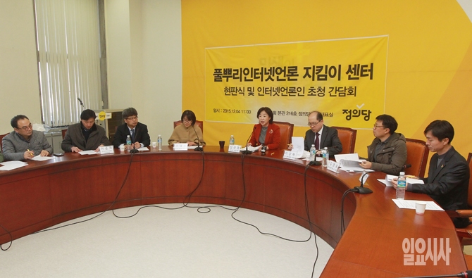 심상정 정의당 상임대표가 4일 오전 서울 여의도 국회에서 열린 풀뿌리인터넷언론 지킴이 센터 현판식 및 인터넷언론인 초청 간담회에서 모두발언을 하고 있다.