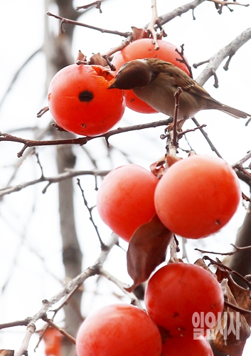 [포토] '홍시 맛있네~' 감 쪼아 먹는 참새
