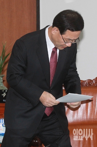 국회 정보위원장인 주호영 새누리당 의원이 4일 오후 서울 여의도 국회에서 가진 테러방지법 등에 대한 기자간담회에 입장하고 있다.