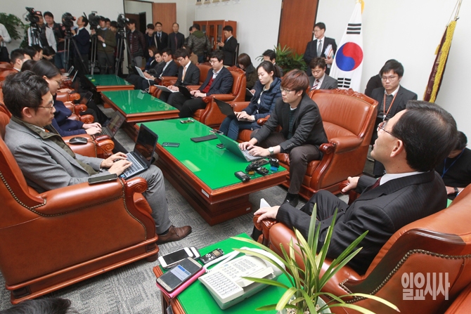 국회 정보위원장인 주호영 새누리당 의원이 4일 오후 서울 여의도 국회에서 테러방지법 등과 관련해 기자간담회를 갖고 있다.
