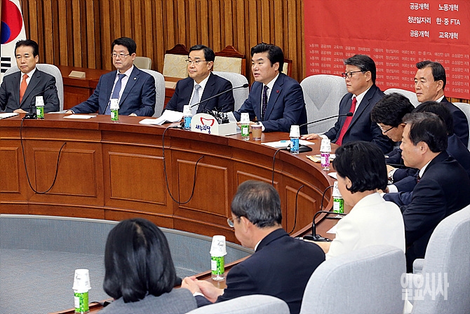 8일, 서울 여의도 국회서 열린 새누리당 원내대책회의서 원유철 원내대표가 모두발언하고 있다.