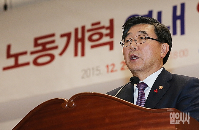 29일, 서울 여의도 국회 의원회관 대강당서 열린 노동개혁 연내 입법을 호소하는 헌혈대회에서 이기권 고용노동부장관이 축사를 하고 있다.