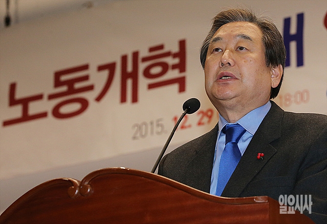 29일, 서울 여의도 국회 의원회관 대강당서 열린 노동개혁 연내 입법 호소 헌혈대회에서 새누리당 김무성 대표가 인사말을 하고 있다.