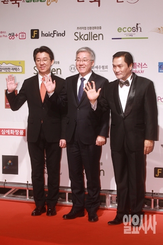 김종덕 문화체육관광부 장관(가운데)과 거룡 한국영화배우협회 회장(오른쪽)이 29일 오후 서울 용산구 한남동 그랜드 하얏트 서울에서 열린 '2015년 스타의 밤-대한민국 톱스타 상 시상식'에서 포토타임을 갖고 있다.