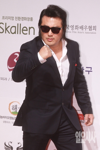 배우 김보성이 29일 오후 서울 용산구 한남동 그랜드 하얏트 서울에서 열린 '2015년 스타의 밤-대한민국 톱스타 상 시상식'에서 포토타임을 갖고 있다.