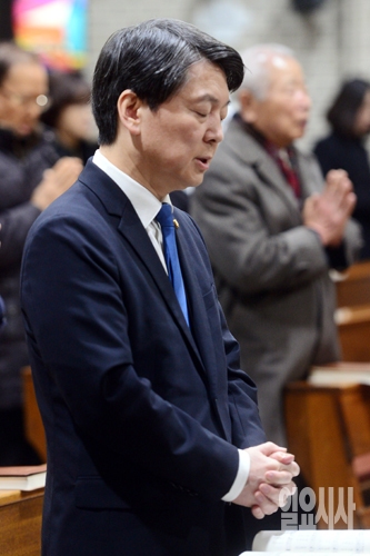 무소속 안철수 의원이 30일 오전 서울 도봉구 창동 성당에서 고 김근태 4주기 추모미사를 참례하고 있다.
