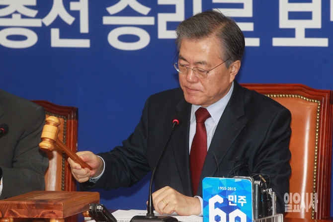 문재인 더불어민주당 대표가 30일 오전 서울 여의도 국회에서 열린 더불어민주당 최고위원회의에서 회의 속개하고 있다.