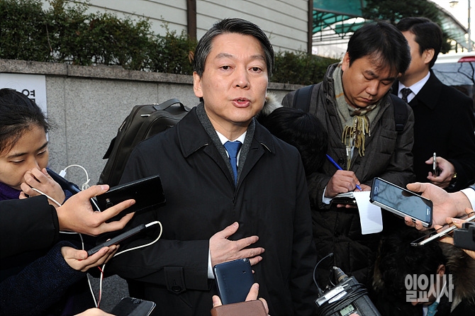 30일, 무소속 안철수 의원이 서울 도봉구 창동성당서 열린 고 김근태 선생 4주기 추모미사에 참석한 자리에서 취재진의 질문에 답변하고 있다.