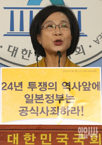 30일, 서울 여의도 국회 정론관에서 정의당 김제남 의원이 정부의 일본군 위안부 합의와 관련해 기자회견을 갖고 있다.