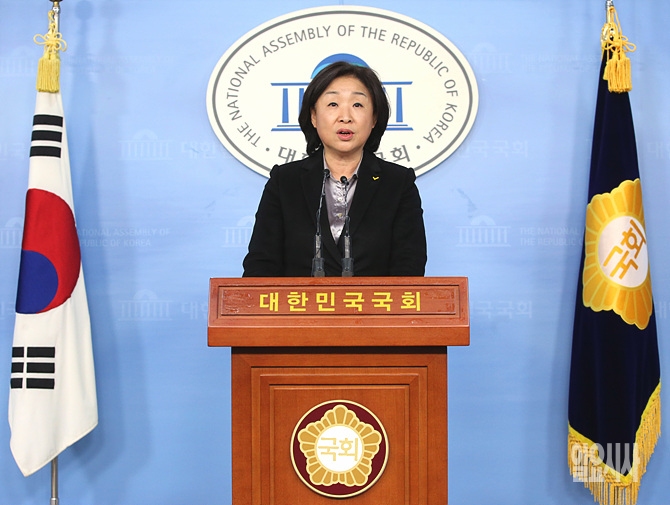 30일, 서울 여의도 국회 정론관에서 정의당 심상정 대표가 선거구획정 관련 기자회견을 갖고 있다.