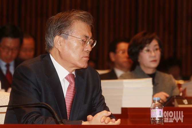 문재인 더불어민주당 대표가 31일 오전 서울 여의도 국회에서 열린 더불어민주당 의원총회에서 생각에 잠겨 있다.