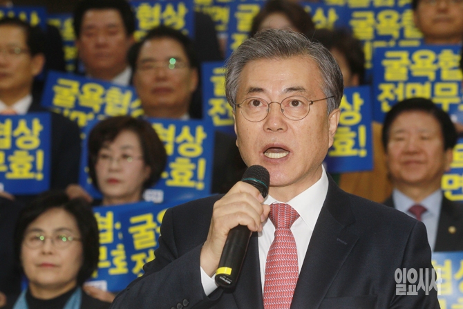 문재인 더불어민주당 대표가 31일 오전 서울 여의도 국회에서 열린 박근혜 정부의 일본군 위안부 문제 한일외교회담 결과에 대한 규탄대회에서 모두발언을 하고 있다.
