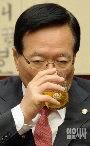 31일 서울 여의도 국회 의장접견실에서 열린 여야중진의원 회동에서 정의화 국회의장이 물을 먹고 있다.