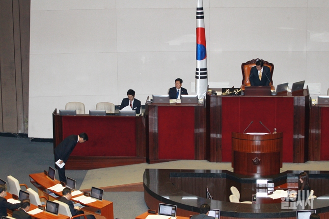 이종진 새누리당 의원이 31일 오후 서울 여의도에서 열린 2015년 마지막 국회 본회의에서 이석현 국회부의장에게 인사를 하고 있다.