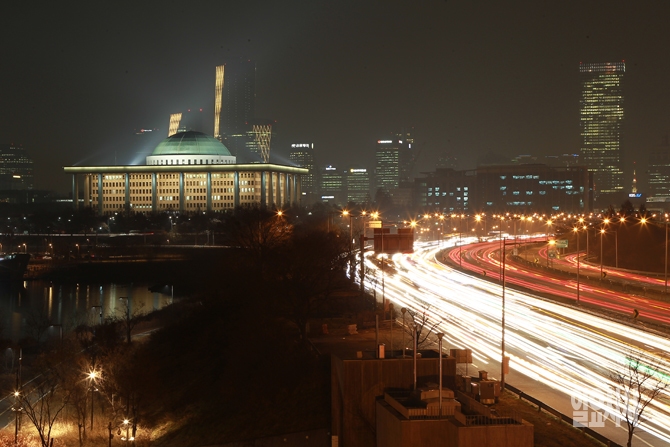 2015년의 마지막 날인 31일 오후 서울 영등포구 여의도 국회의사당에 불이 밝혀져 있다.