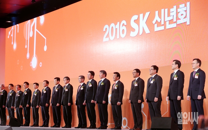 최근 혼외로 아이를 둔 사실을 고백해 파문을 일으키고 있는 최태원 SK그룹 회장이 4일 오전 서울 광장동 워커힐호텔에서 열린 그룹 신년하례회에 참석하고 있다.
