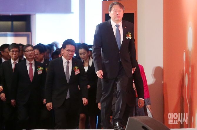 최근 혼외로 아이를 둔 사실을 고백해 파문을 일으키고 있는 최태원 SK그룹 회장이 4일 오전 서울 광장동 워커힐호텔에서 열린 그룹 신년하례회에 참석하고 있다.