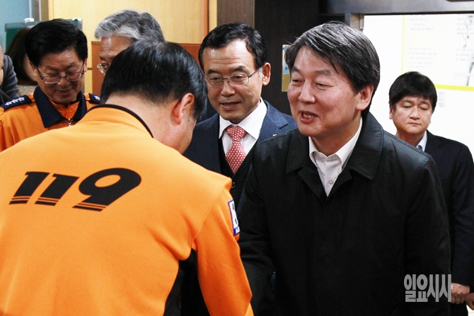 신당 창당을 준비중인 무소속 안철수 의원이 4일 오후 서울 중구 서울종합방재센터 종합상황실을 방문해 시설과 장비 등을 둘러보며 근무자들과 인사를 나누고 있다.