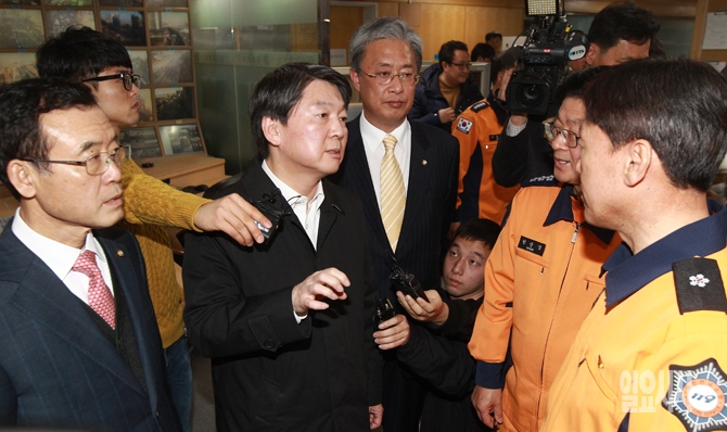 신당 창당을 준비중인 무소속 안철수 의원이 더불어민주당을 탈당한 무소속 유성엽, 임내현 의원과 함께 4일 오후 서울 중구 서울종합방재센터 종합상황실을 방문해 시설과 장비 등을 둘러보며 근무자들과 대화를 나누고 있다.