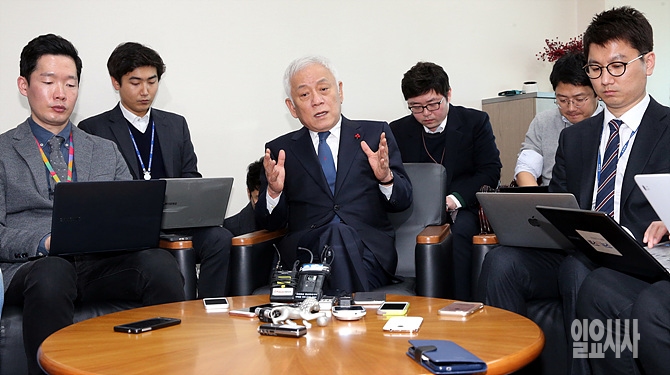 4일, 서울 여의도 국회 의원회관에서 전날(3일) 더불어민주당을 탈당했던 김한길 무소속 의원이 기자간담회를 갖고 있다.