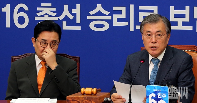 [포토] '2016 첫 중진회의'서 발언하는 문재인