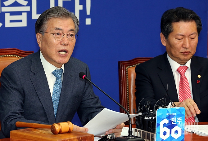 4일, 서울 여의도 국회서 더불어민주당 새해 첫 중진회의가 열린 가운데, 문재인 대표가 모두발언을 하고 있다.