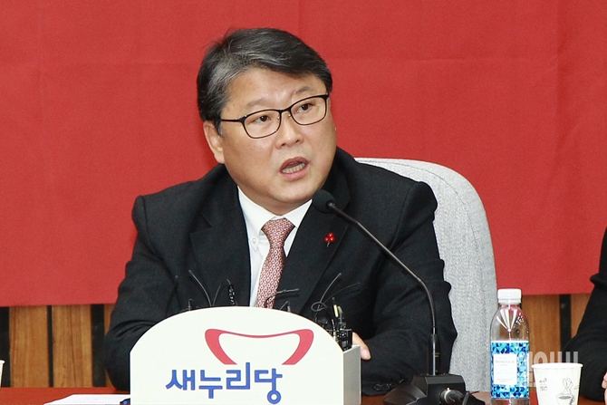 조원진 새누리당 원내수석부대표가 5일 오전 서울 여의도 국회에서 열린 새누리당 원내대책회의에서 발언을 하고 있다.