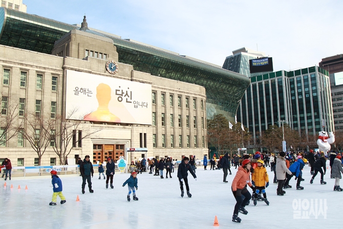 5일 오전 서울광장 스케이트장에서 시민들과 관광객들이 스케이트를 즐기고 있다.