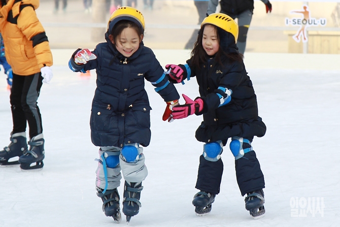 5일 오전 서울광장 스케이트장에서 시민들과 관광객들이 스케이트를 즐기고 있다.