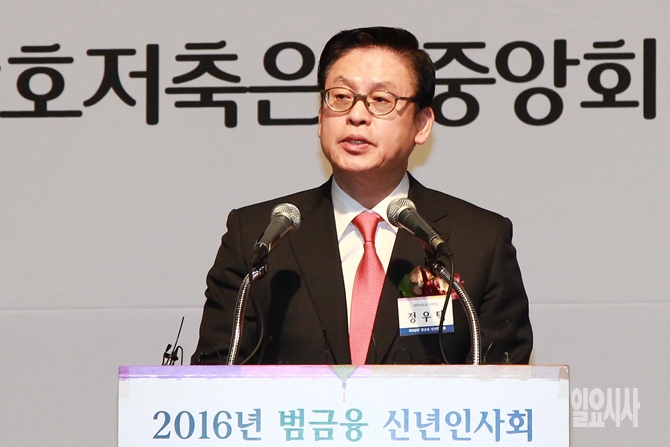 정우택 국회 정무위원장이 5일 오후 서울 소공동 롯데호텔에서 열린 2016년 범금융 신년인사회에서 격려사를 하고 있다.