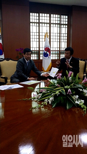 [포토] '항의 방문' 대화 나누는 이종걸-윤병세