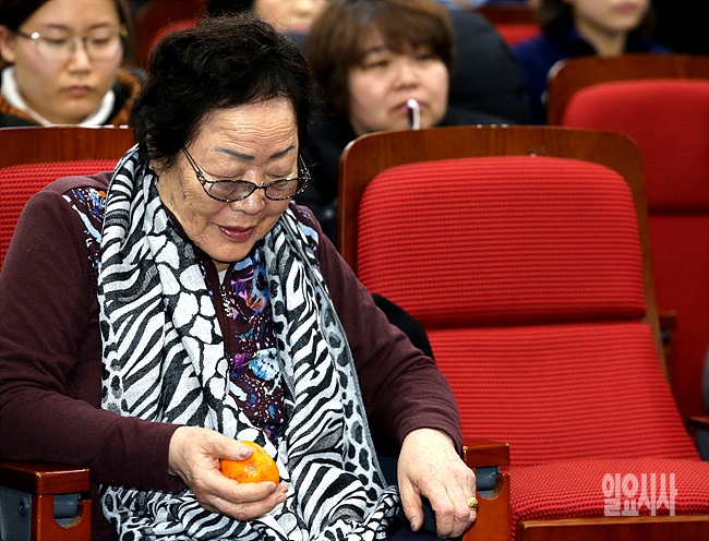 5일, 서울 여의도 국회 의원회관서 열린 '긴급진단 2015 한일외교장관회담의 문제점' 긴급 토론회에 위안부 피해자인 이용수 할머니가 참석해 있다.