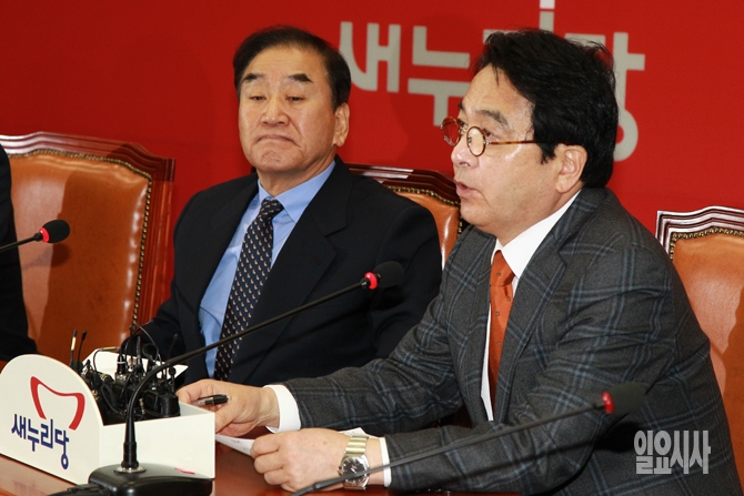 심재철 새누리당 의원이 6일 오전 서울 여의도 국회에서 열린 새누리당 최고중진연석회의에서 모두발언을 하고 있다.
