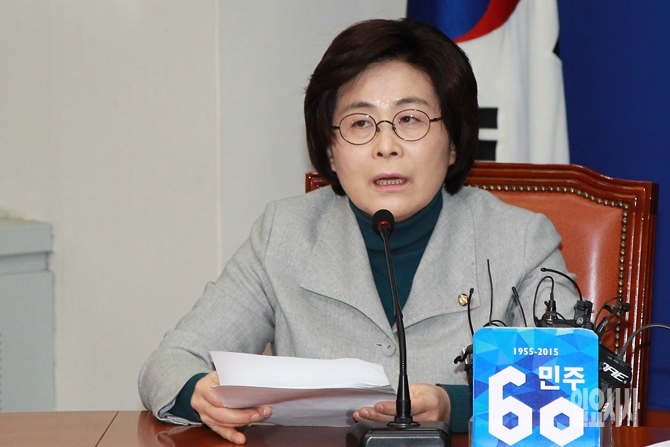 유승희 더불어민주당 최고위원이 6일 오전 서울 여의도 국회에서 열린 더불어민주당 최고위원회의에서 모두발언을 하고 있다.