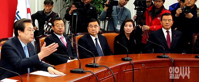 6일, 북한 수소폭탄 실험과 관련해 서울 여의도 국회서 새누리당 김무성 대표, 원유철 원내대표 등이 참석해 긴급 대책회의가 열리고 있는 가운데, 김 대표가 모두발언을 하고 있다.