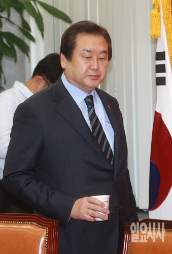 김무성 새누리당 대표가 7일 오전 서울 여의도 국회에서 열린 새누리당 최고위원회의에 입장하고 있다.