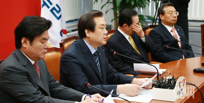김무성 새누리당 대표가 7일 오전 서울 여의도 국회에서 열린 새누리당 최고위원회의에서 모두발언을 하고 있다.